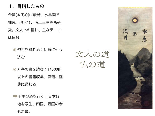 講演内容は2018年春に京都府立山城郷土資料館で開催されました企画展「仏と歩んだ画家 穐月明」の時にお話しさせて頂いたパワーポイントを再構成したのですが、地元の方や近しい方にも私の知る限りの穐月明をまとまった形でお伝えしたく今回の基調講演とさせていただきました。