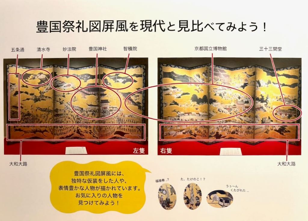 屏風に描かれている位置を現代の京都(東山七条〜五条あたり)に当てはめるとこんな感じです。