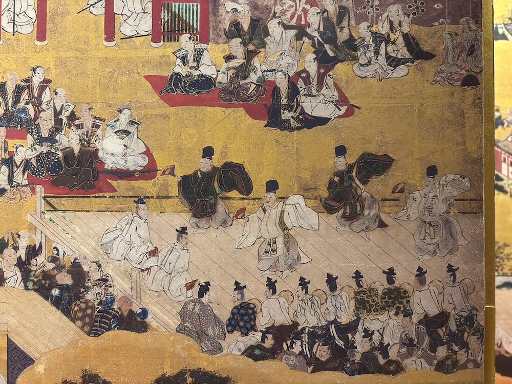 秀吉の7回忌/慶長9年(1604)の8月に豊国神社で盛大に行われた臨時大祭礼の様子を豊臣秀頼の命を受け描かせたものです。作は豊臣家お抱え絵師狩野内膳、時代は関ヶ原の戦いの直後で大阪の陣の前、まだ豊臣家は健在です。